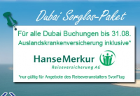 So reist man sicher: Mit der Hanse Merkur und 5 vor Flug. Wer bis zum 31. August bucht, erhält die Versicherung bei einer Reise nach Dubai gratis dazu.